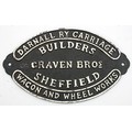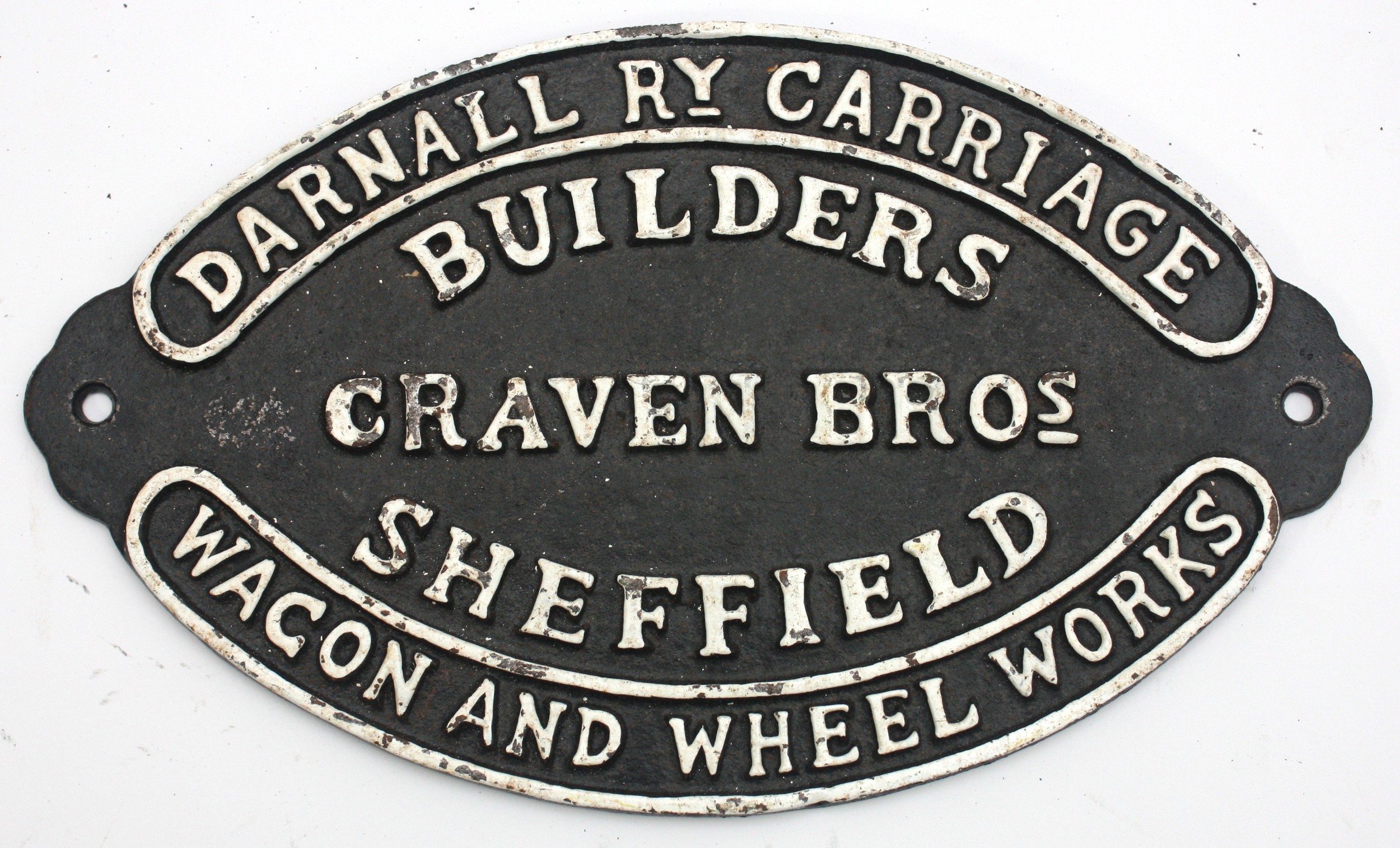 A metal wagon builders plate- Darnall Ry carriage, Wagon and Wheel Works, Craven Bros. Sheffield, 27cm x 16.
