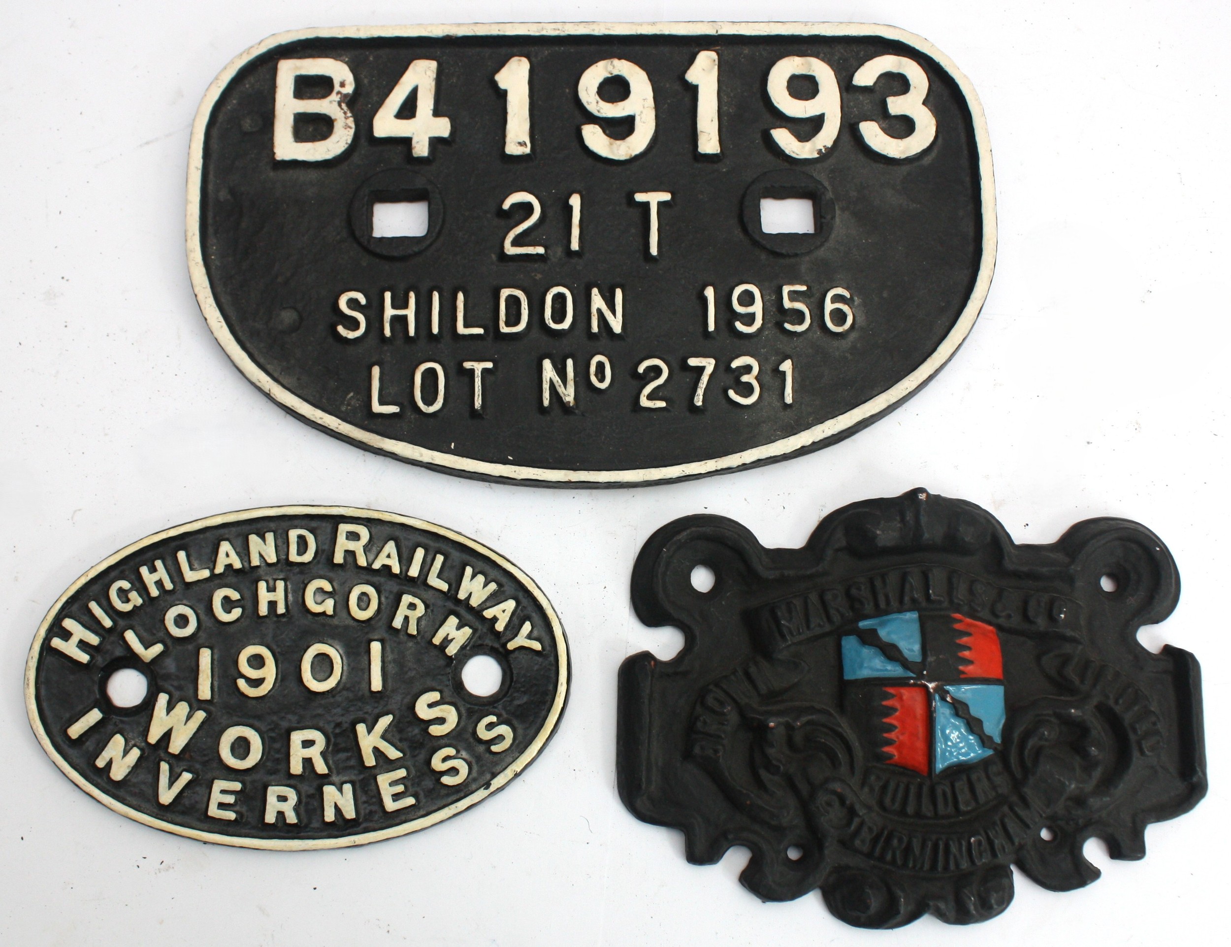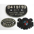 A D wagon plate- Shildon 1956 21 Tons Lot No 2731 B419193 and two sundry replica plates