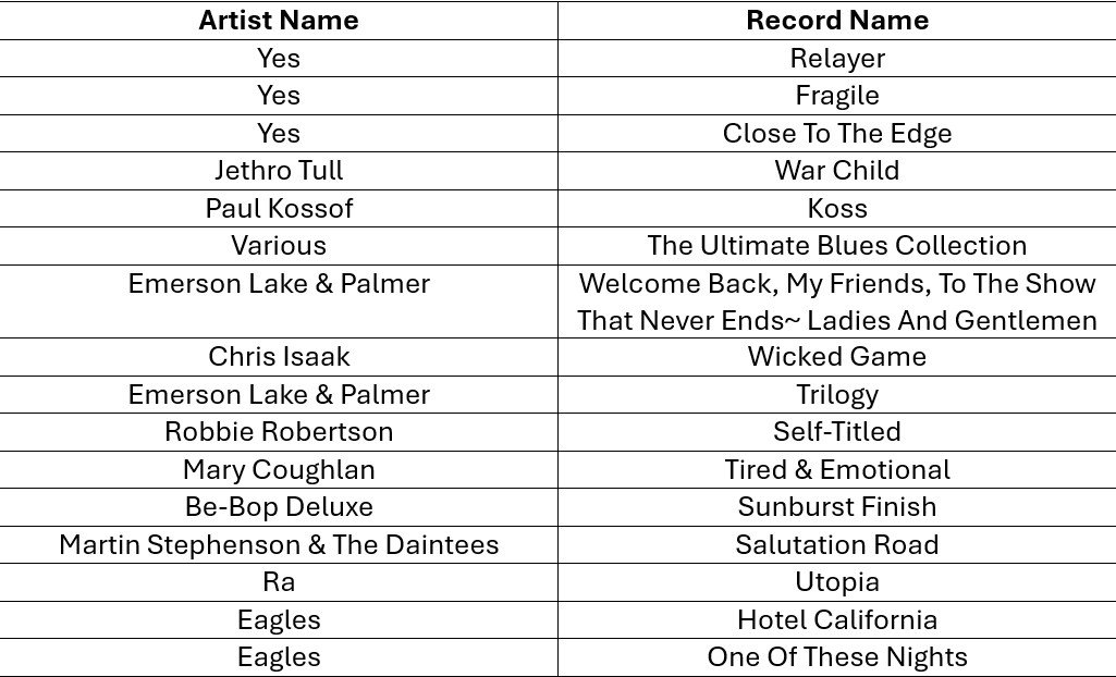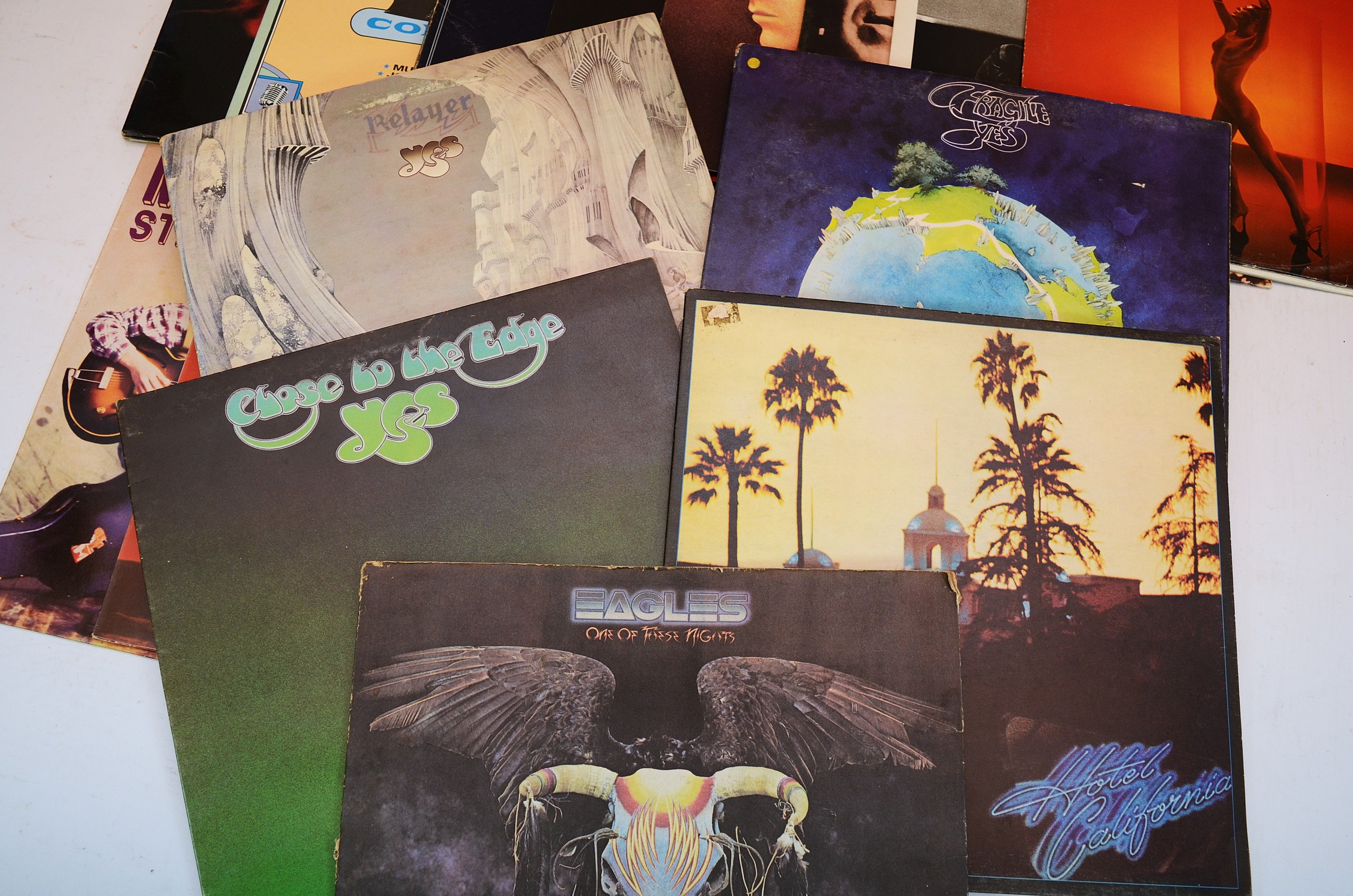 A collection of 16 vinyl LP's to include artists, Yes, Eagles, Jethro Tull and others, please see the images for the full listing.