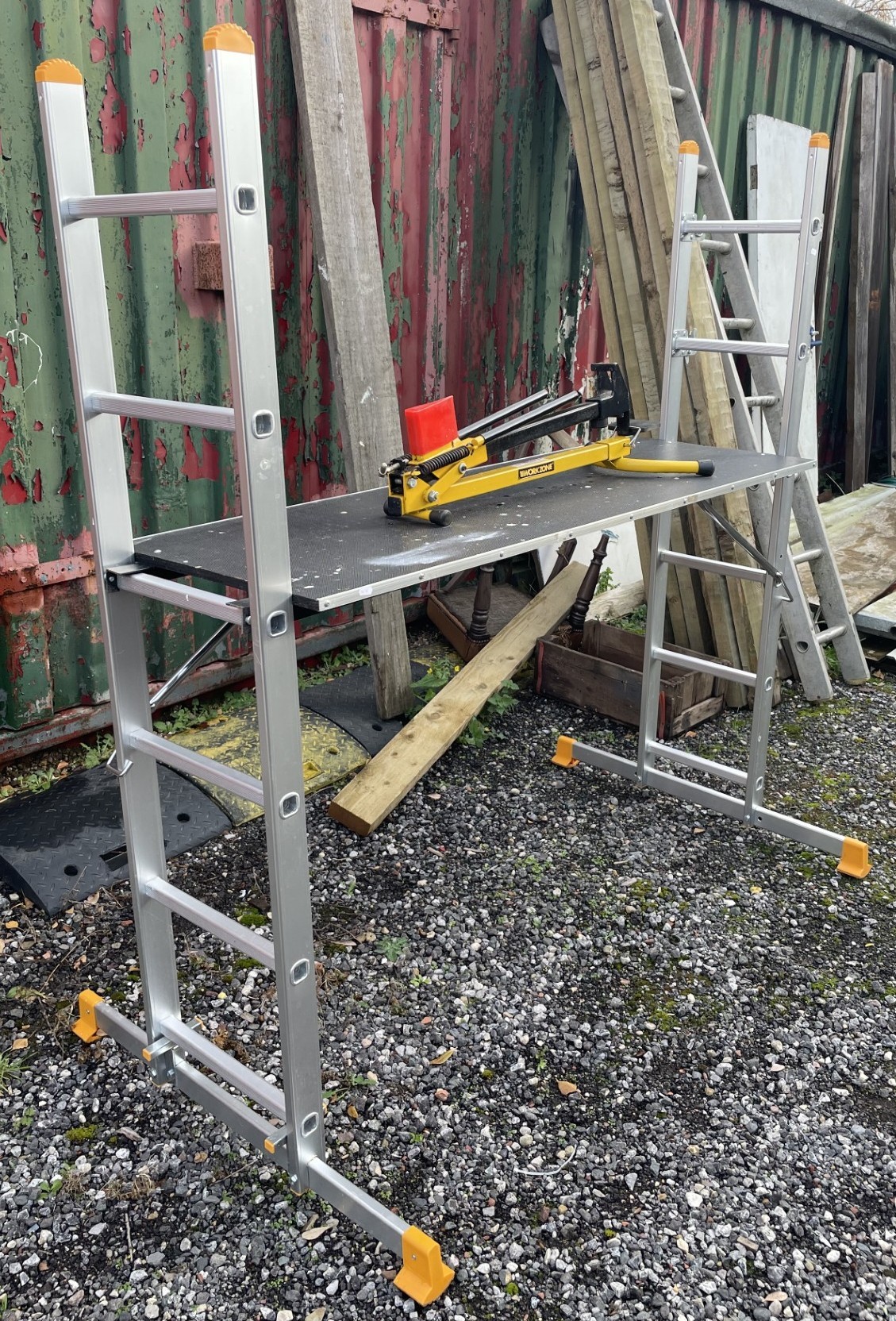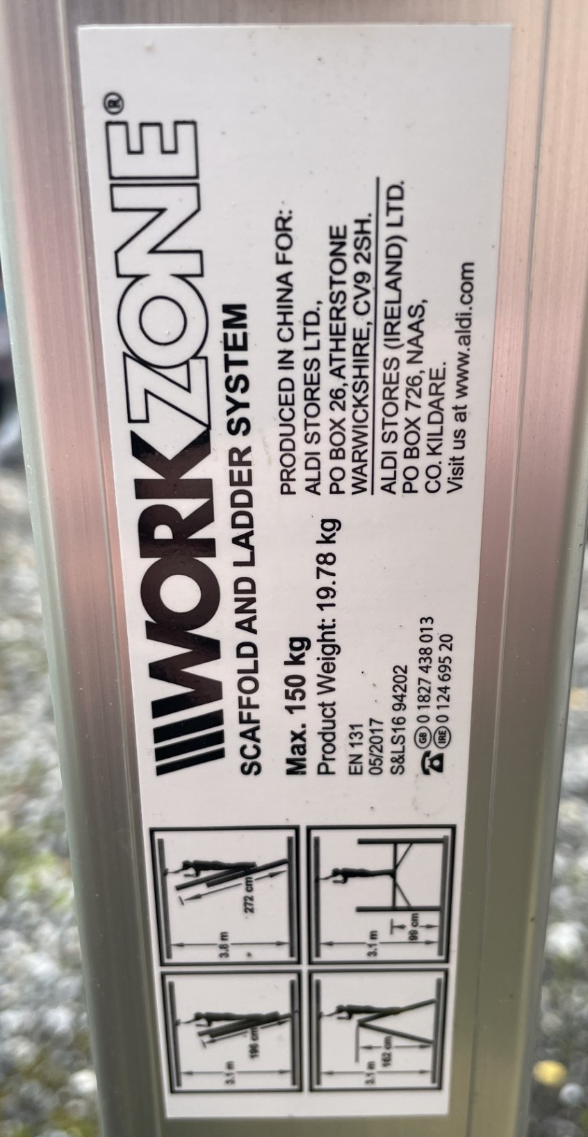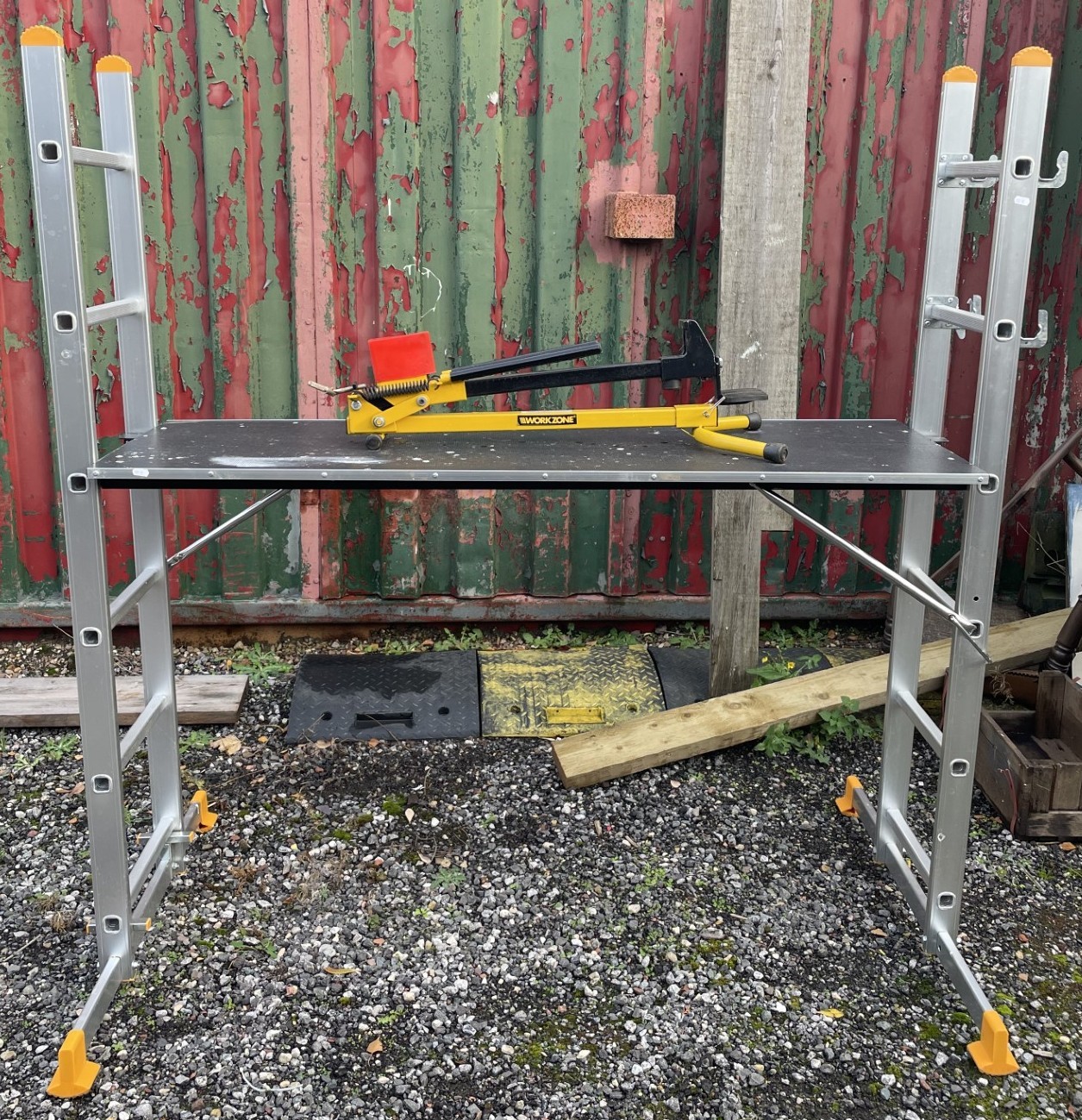 A Workzone mini scaffold and ladder system, 150kg max load, together with a Workzone log splitter.