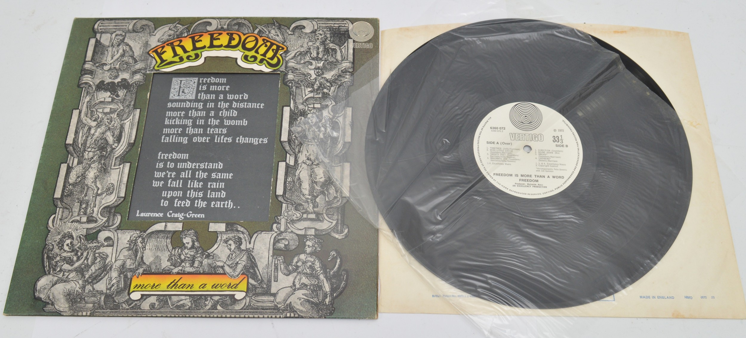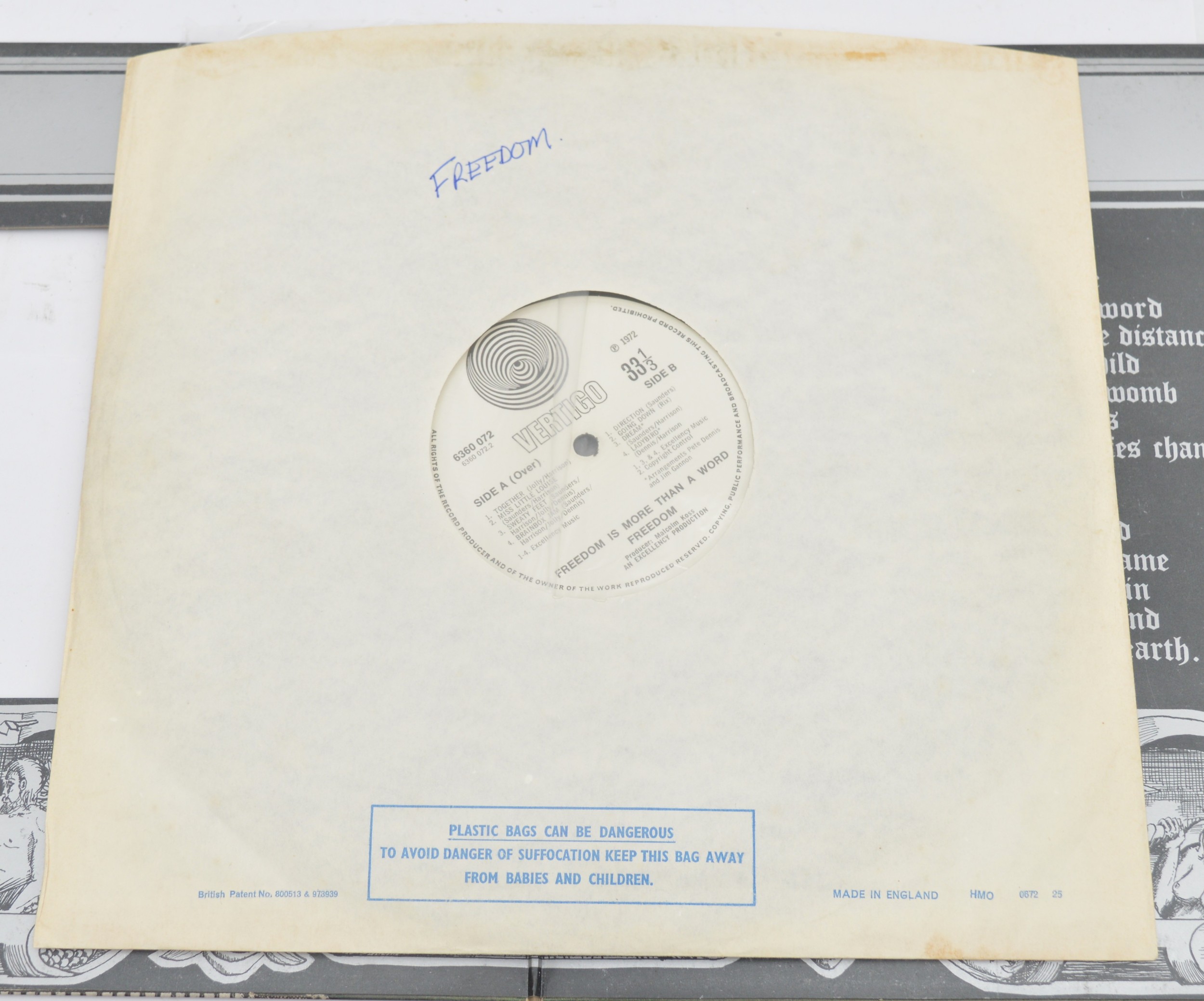 Freedom, Freedom is more than a word LP, Vertigo swirl label, 6360 072, non vertigo swirl inner, gatefold.