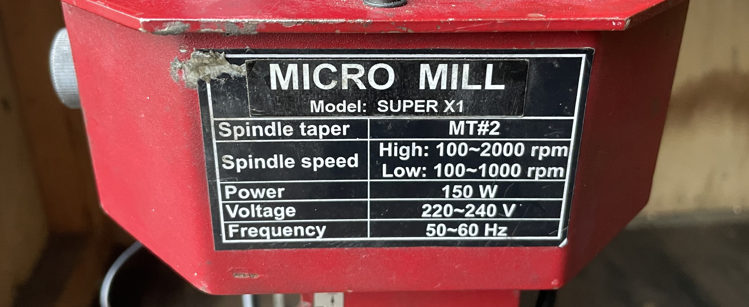 Micro Mill - A compact bench mounting milling machine, model Super X1, 240V single phase, fitted with 13A plug.