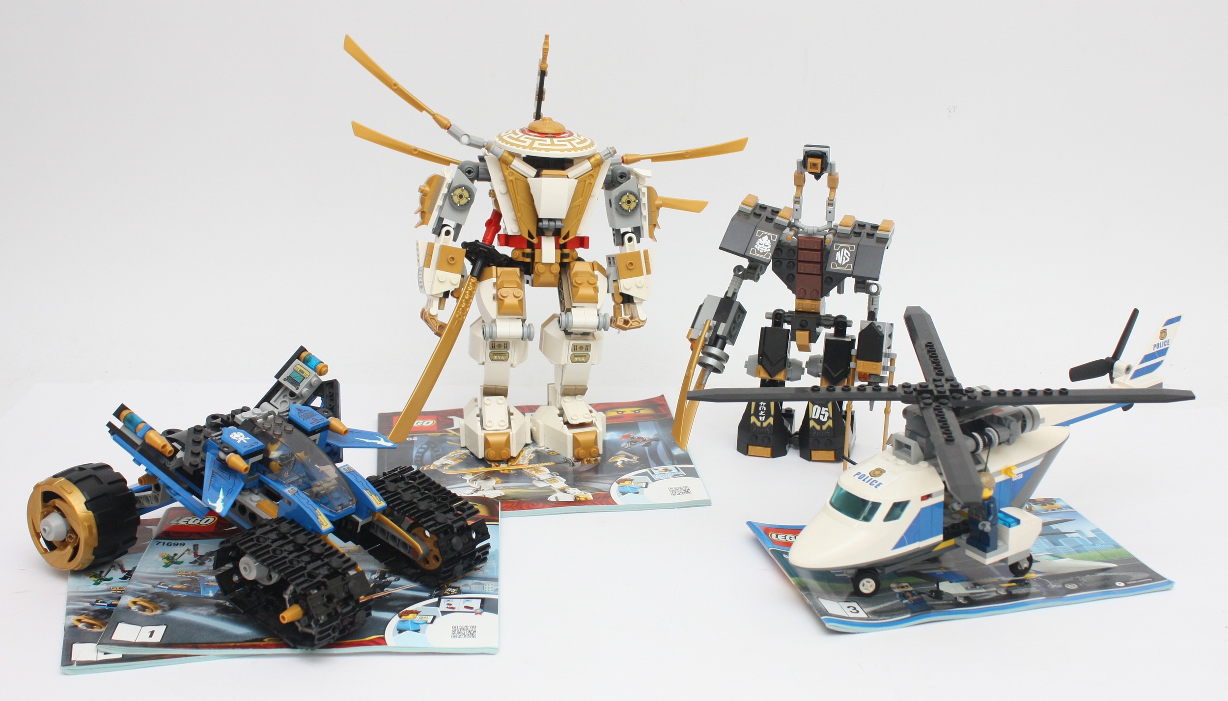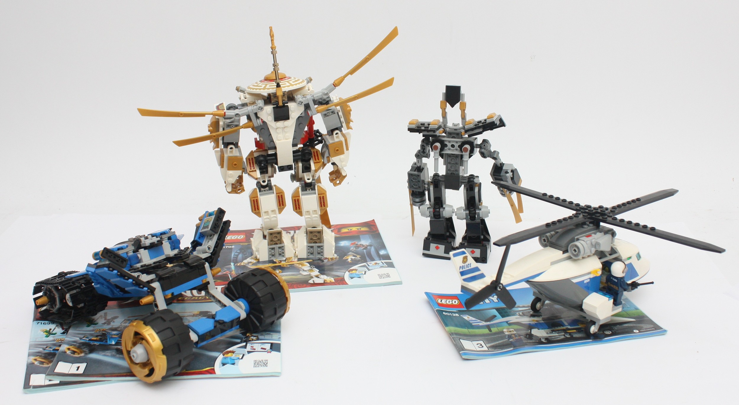 Lego; A group of three Lego 'Ninjago Legacy' ready built models, together with a Lego City helicopter,three with instruction booklets, in one box, unchecked for completeness.