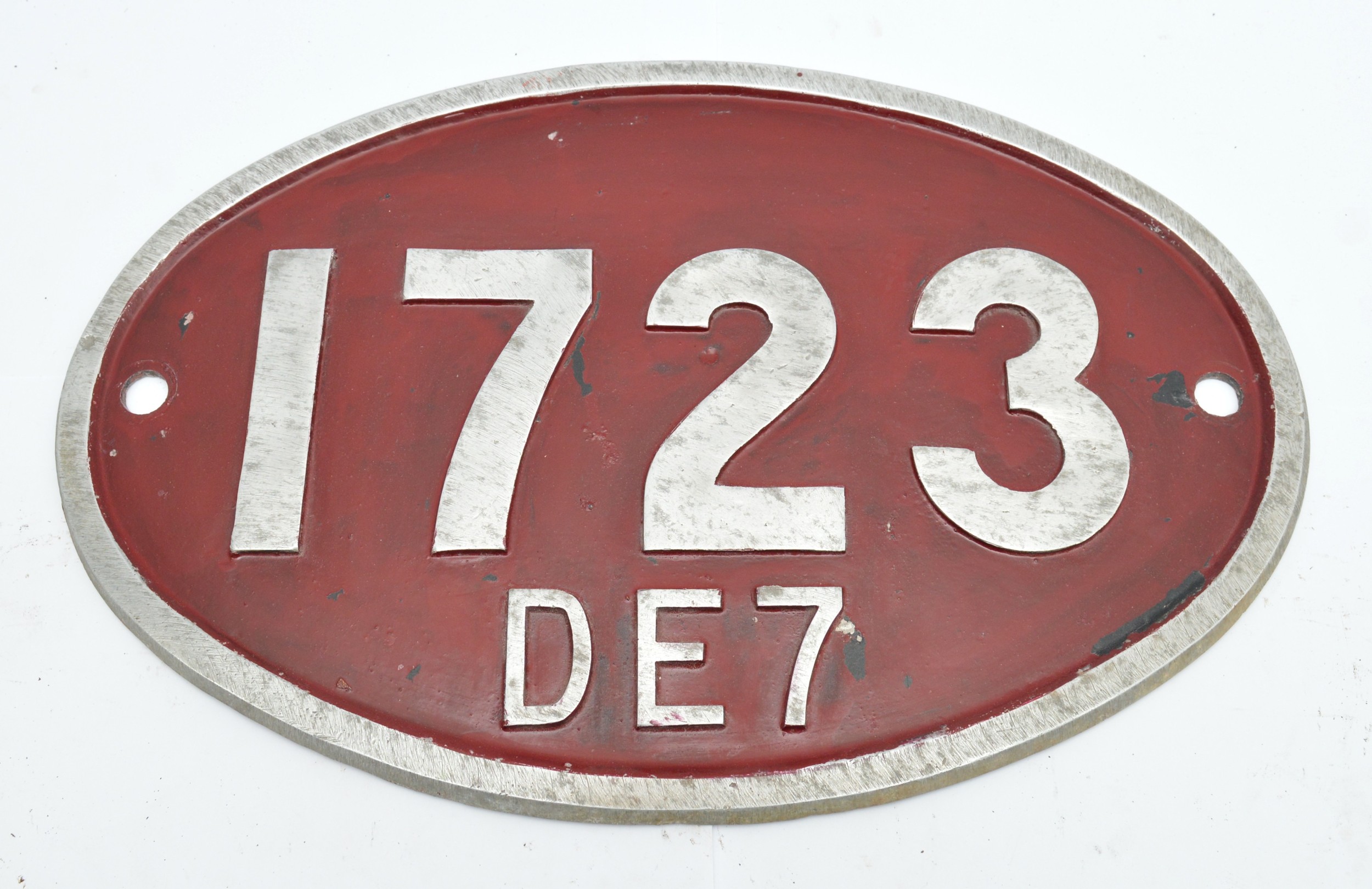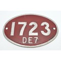Rhodesia Railways oval alloy cabside number 1723 - carried by A Class DE7 diesel-electric co-co locomotive built in Austria in 1973, 32cm x 49.