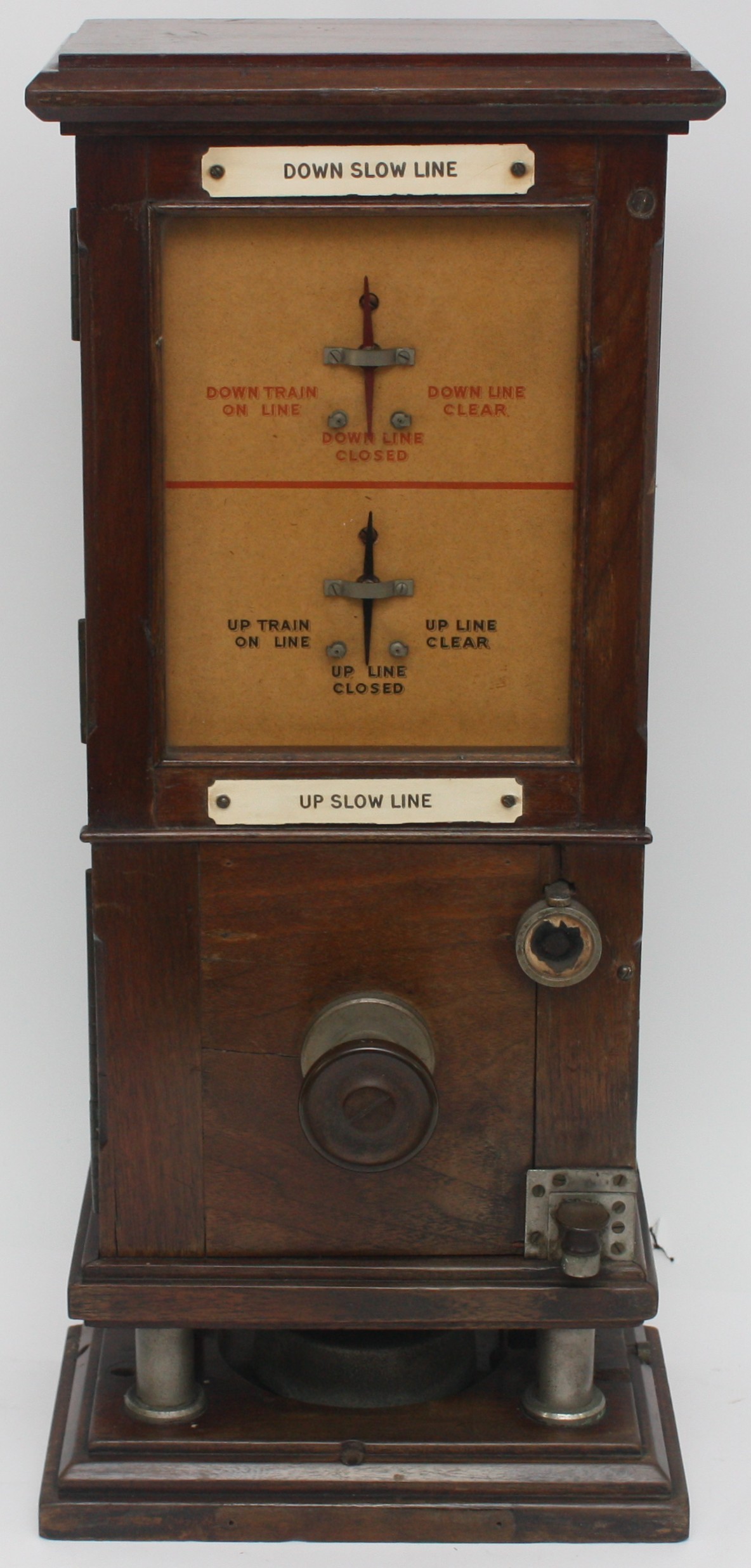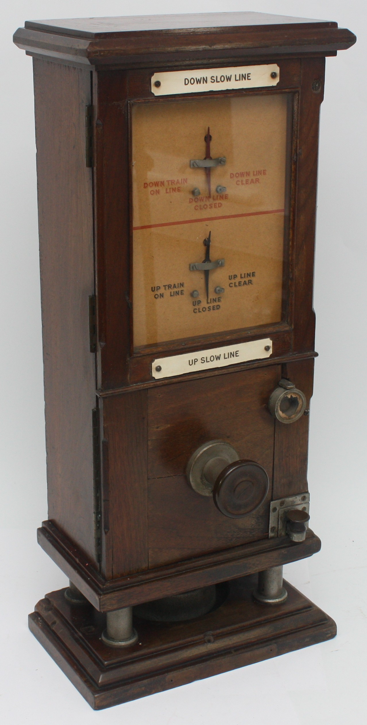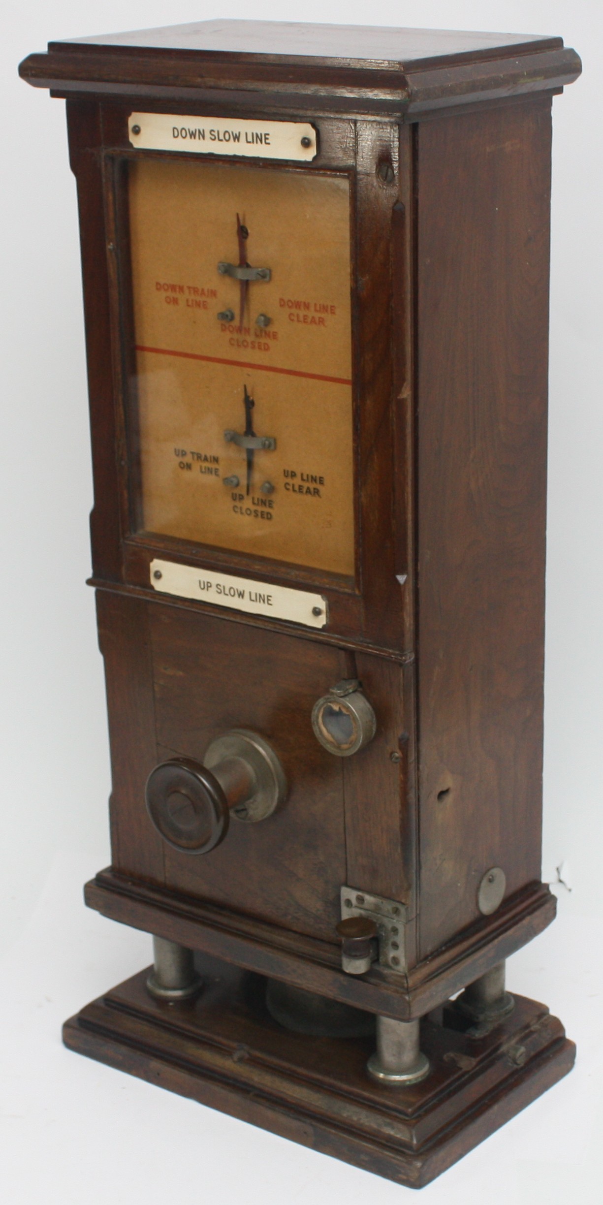 London & North Western Railway Fletchers double line block instrument with underslung bell (dog kennel style) back base is marked L.N.W.R, complete with original wiring