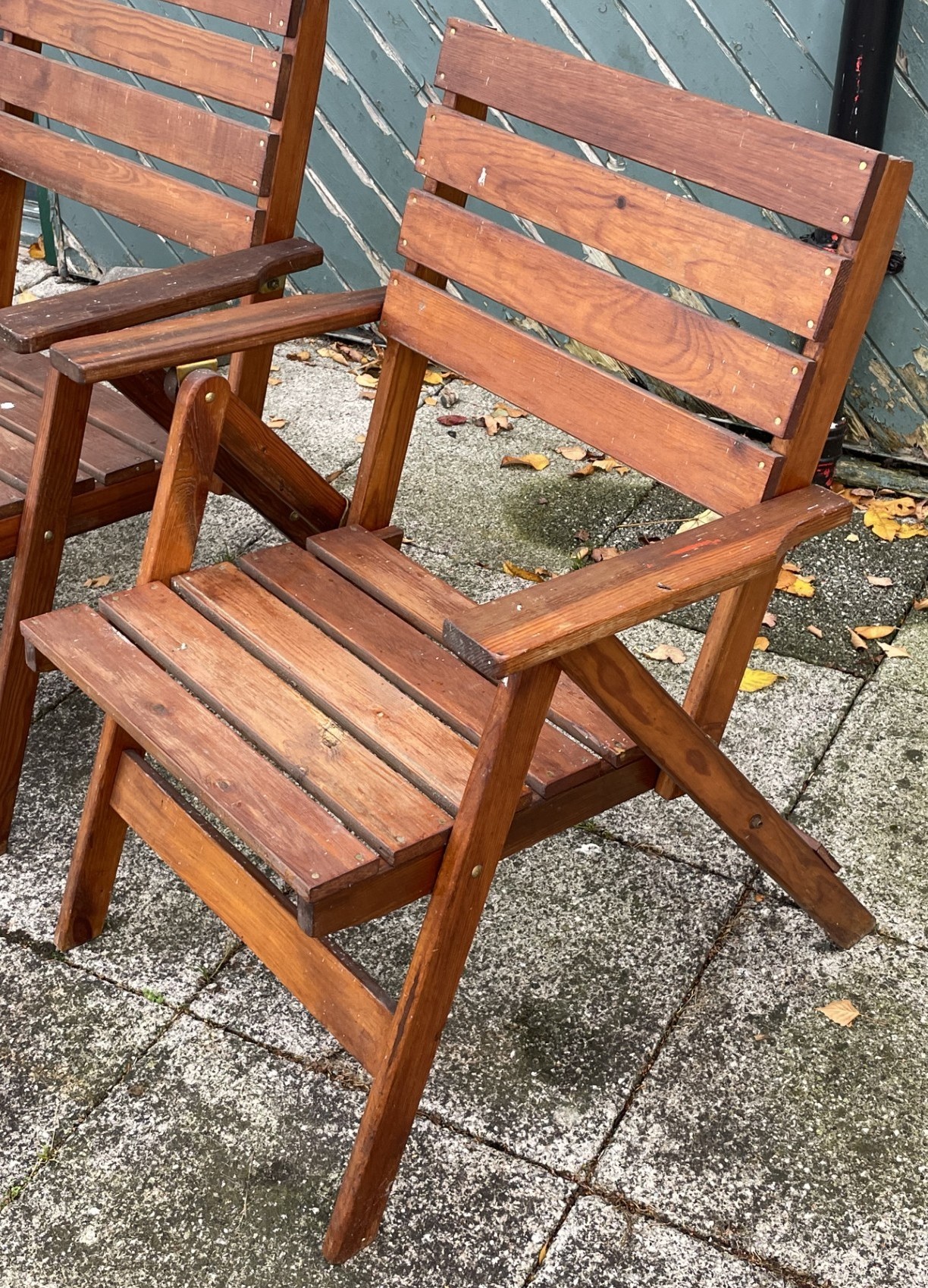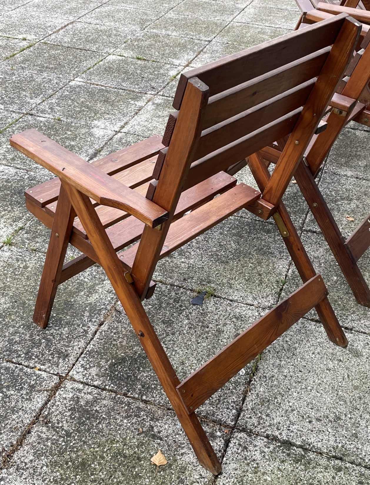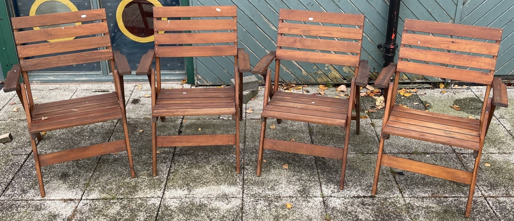 A set of four hardwood folding garden armchairs, W65, H88cm.