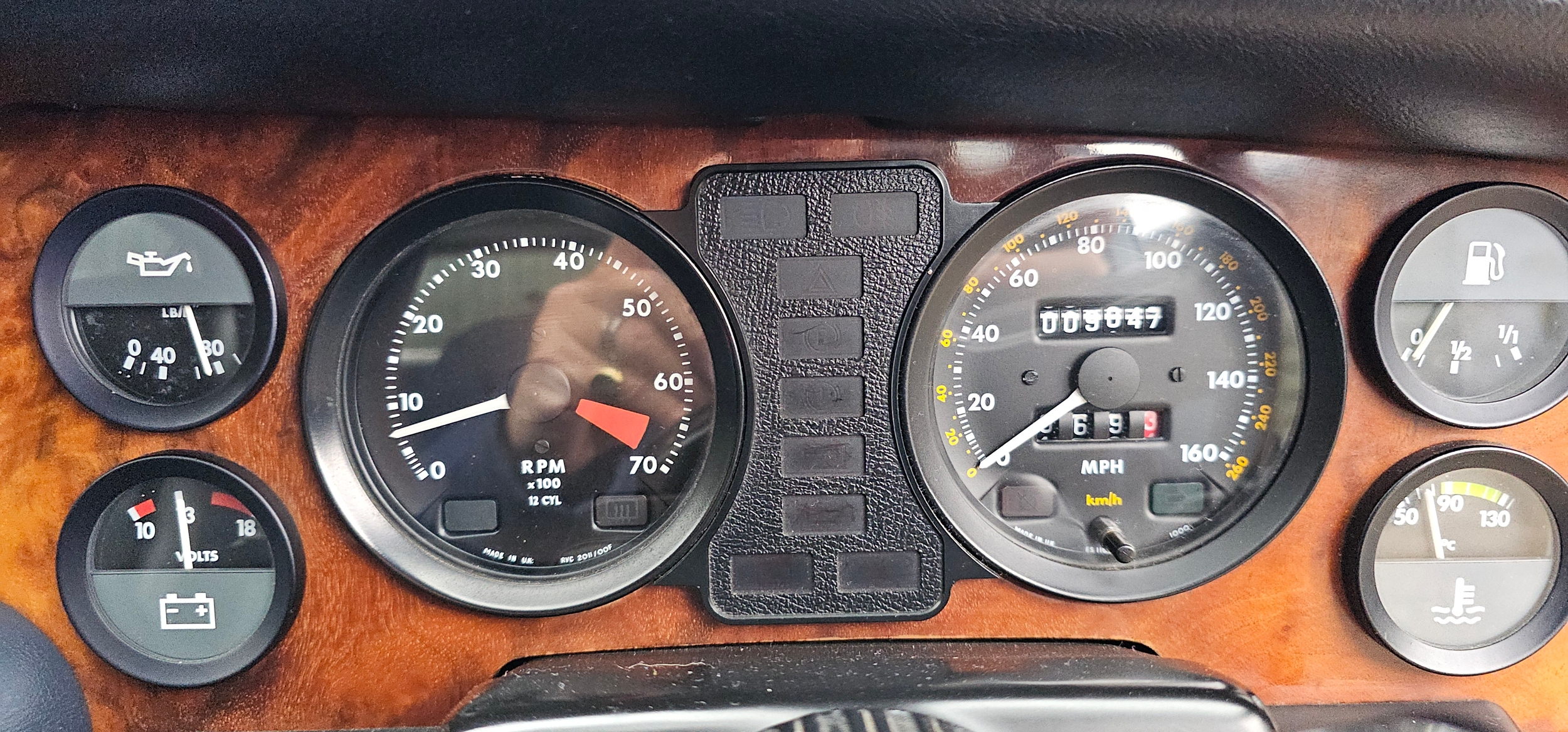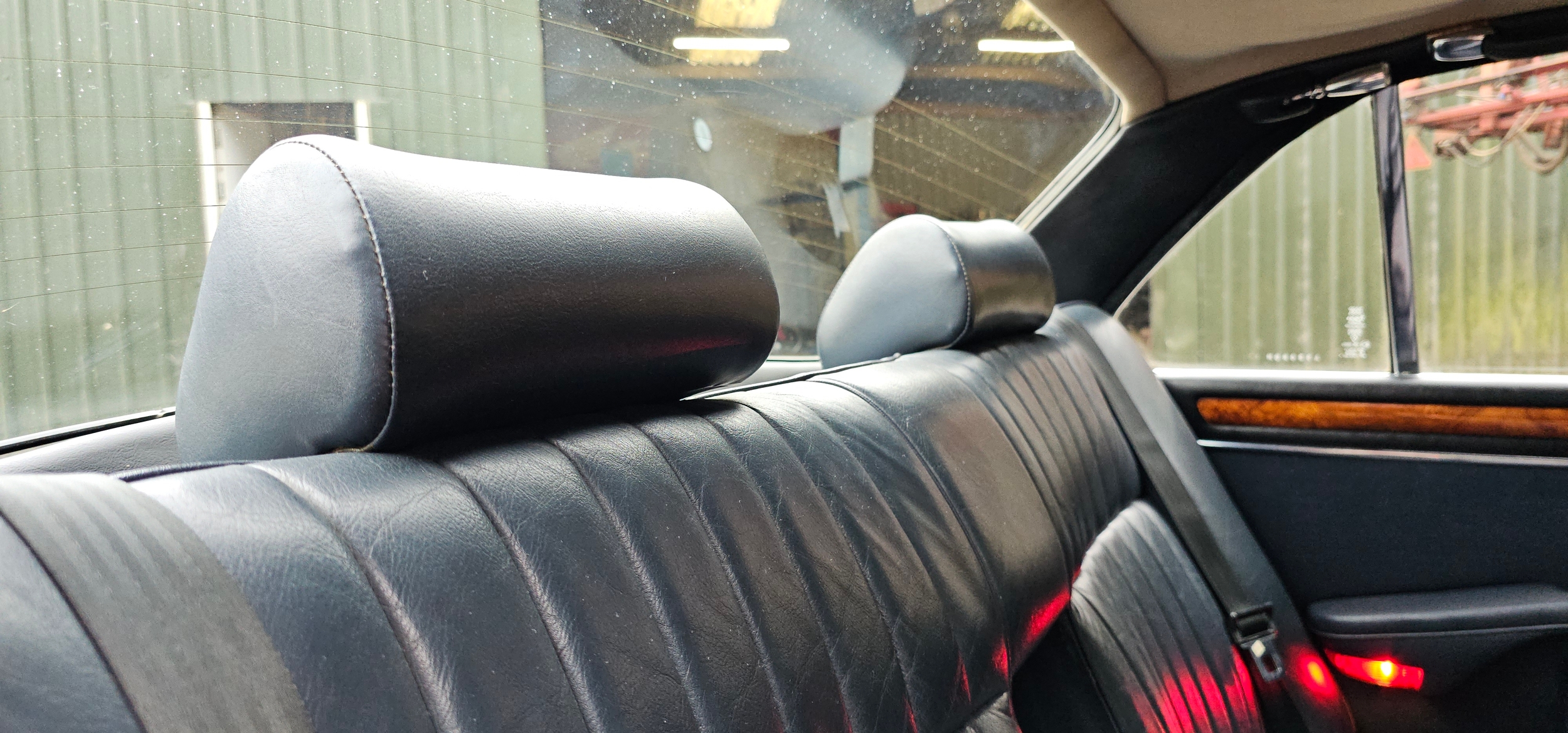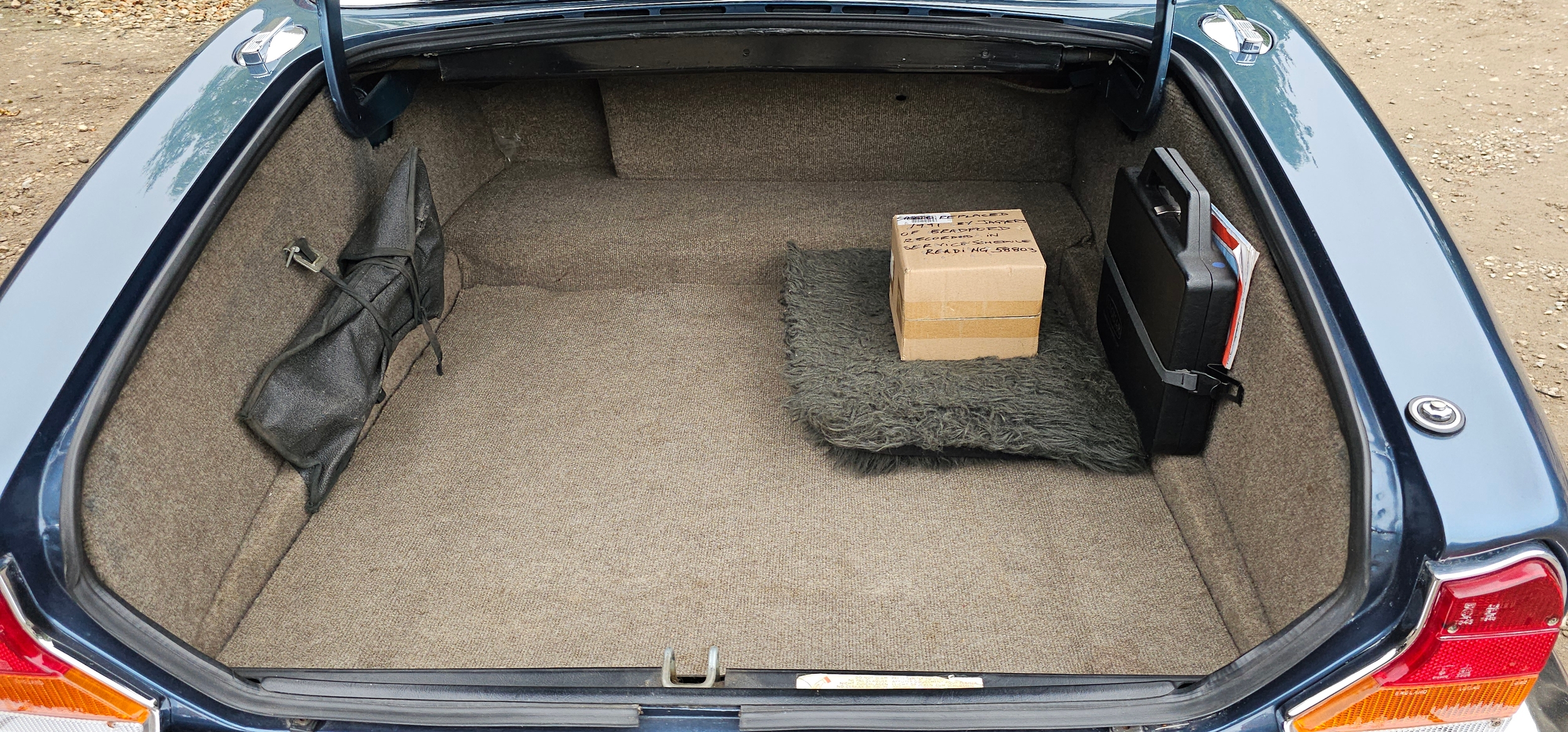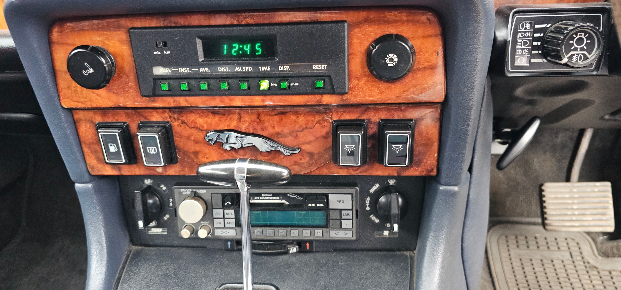 The interior is in very good condition, with unmarked blue leather. The dash, woodwork, carpets are all in fine condition. The chrome too is unblemished.