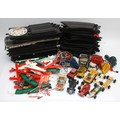Scalextric; a large quantity of track, together with Playmobil racing related accessories. (1 box)