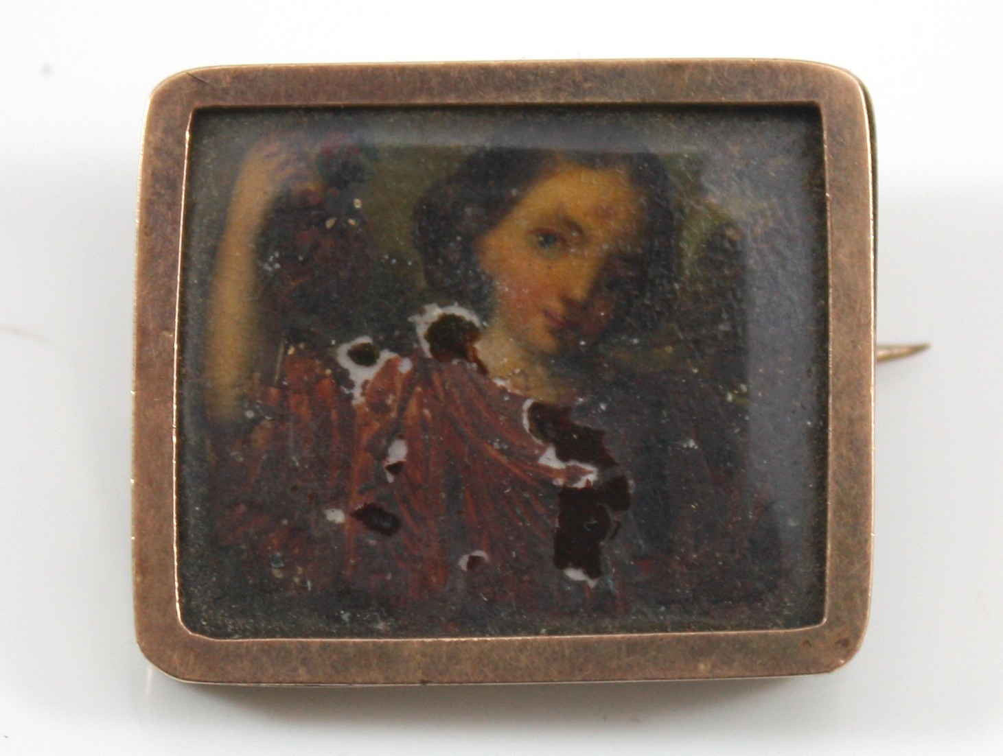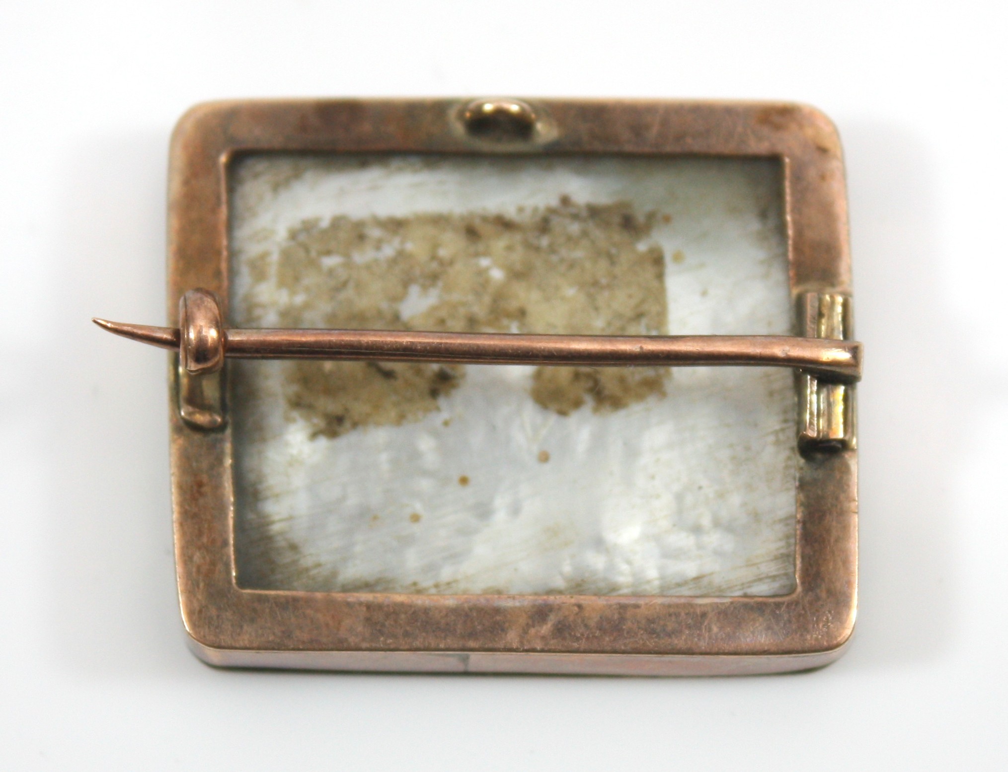 An early 19th century portrait on mother of pearl brooch, 27 x 22mm, 7gm
