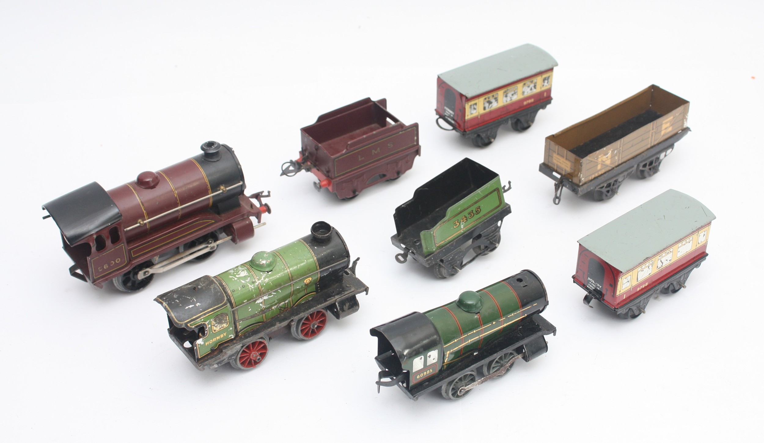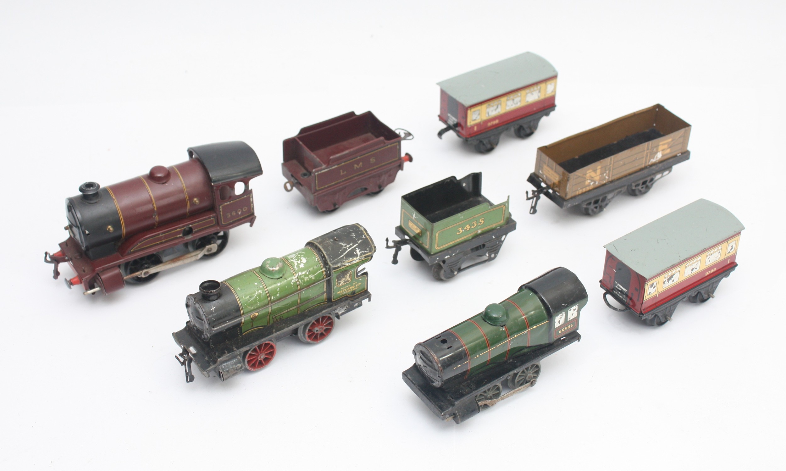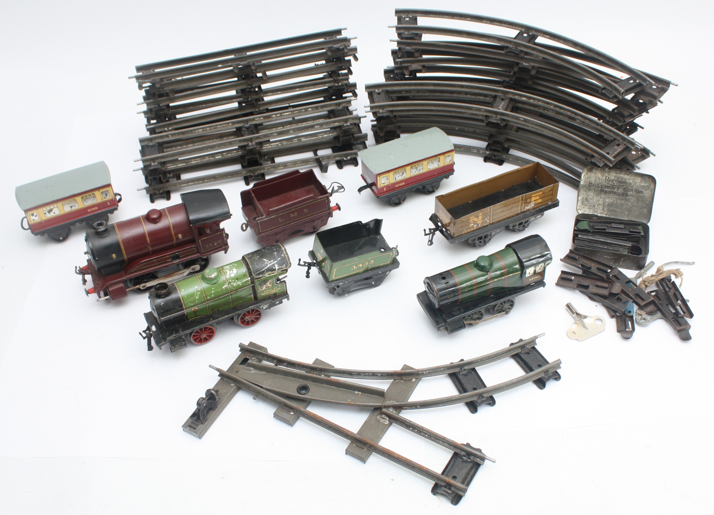 Hornby Railways; 0 Gauge; a quantity of track, together with three locomotives, 60985 and C600. (1 box)