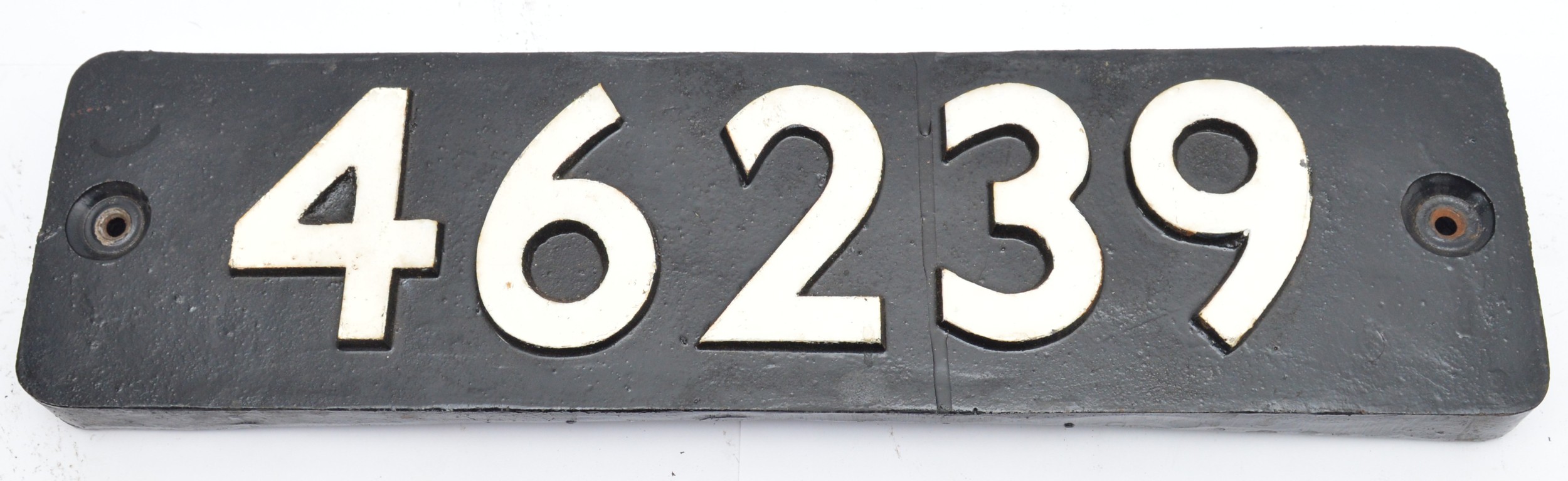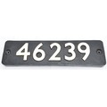 Cast-iron replica L.M.S steam locomotive smokebox number 46239 - original carried by stanier 4-6-2 coronation class engine 'City of Chester' built 1939 and scrapped 1964, 14.5cm x 55.