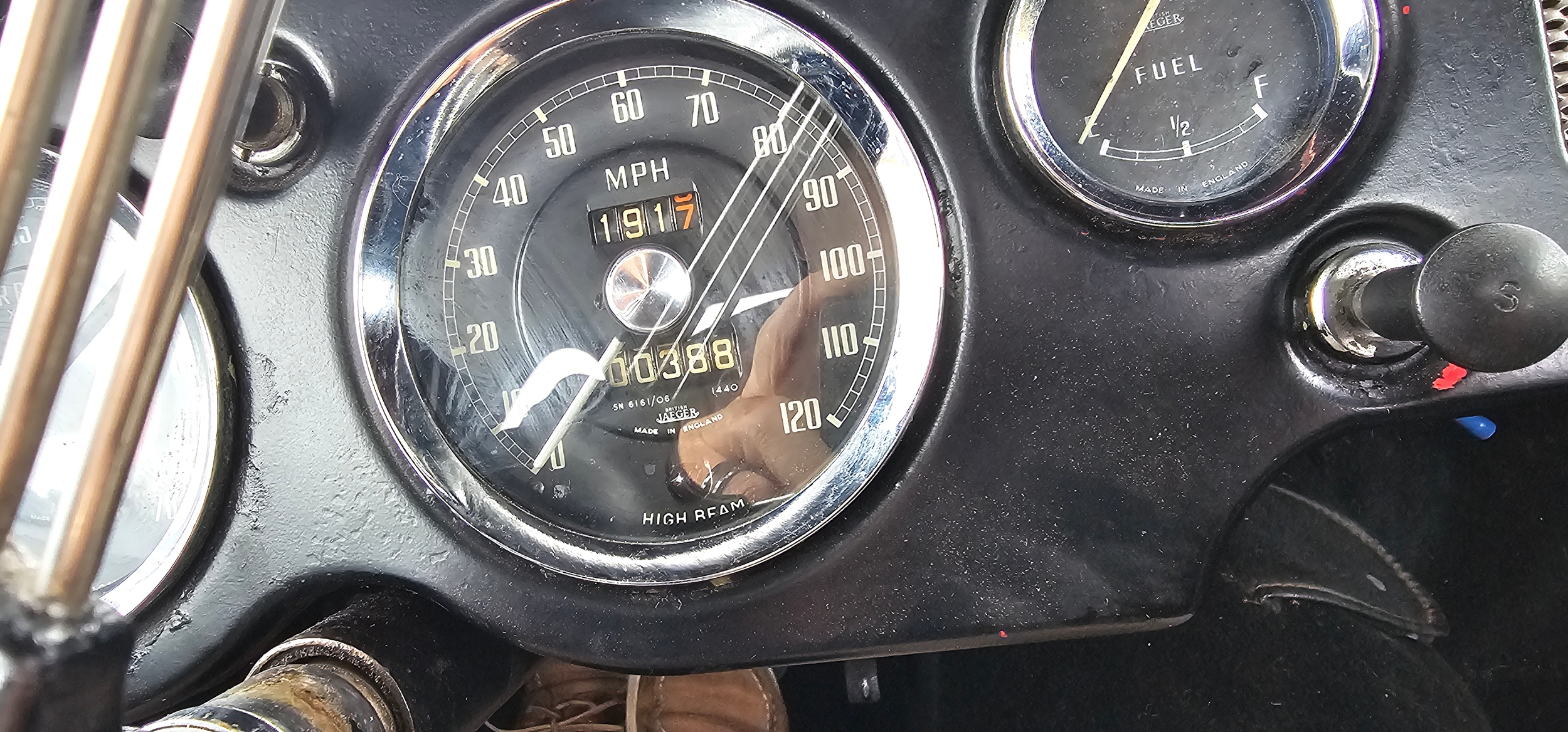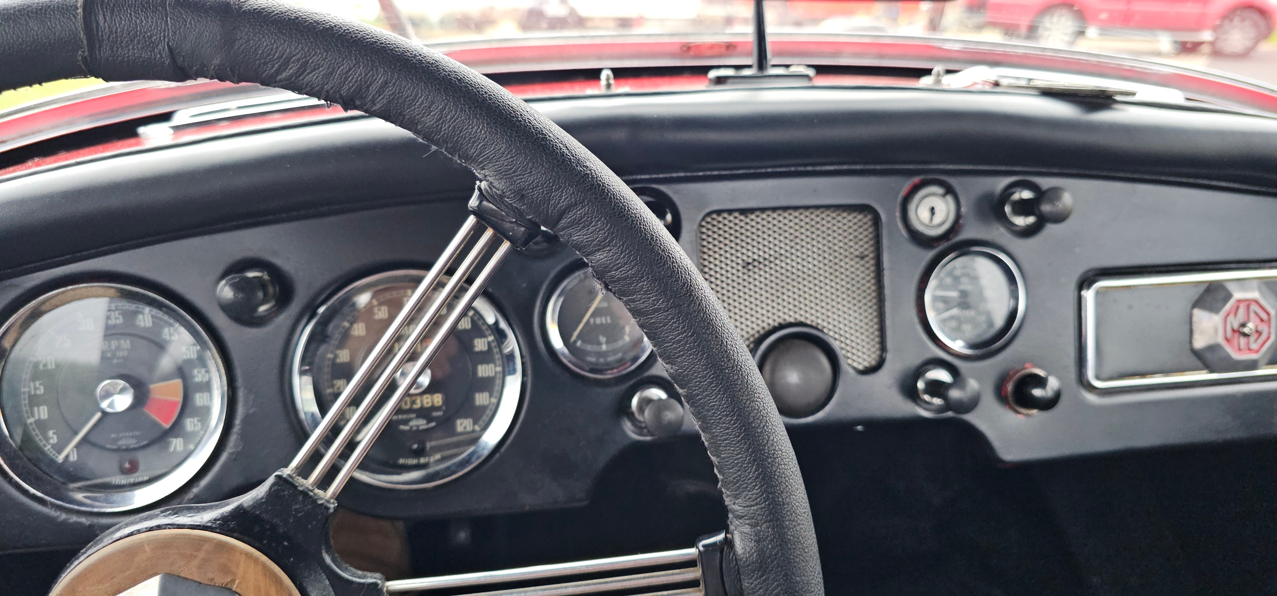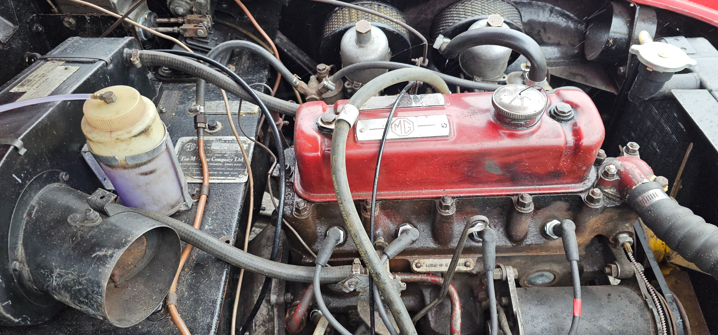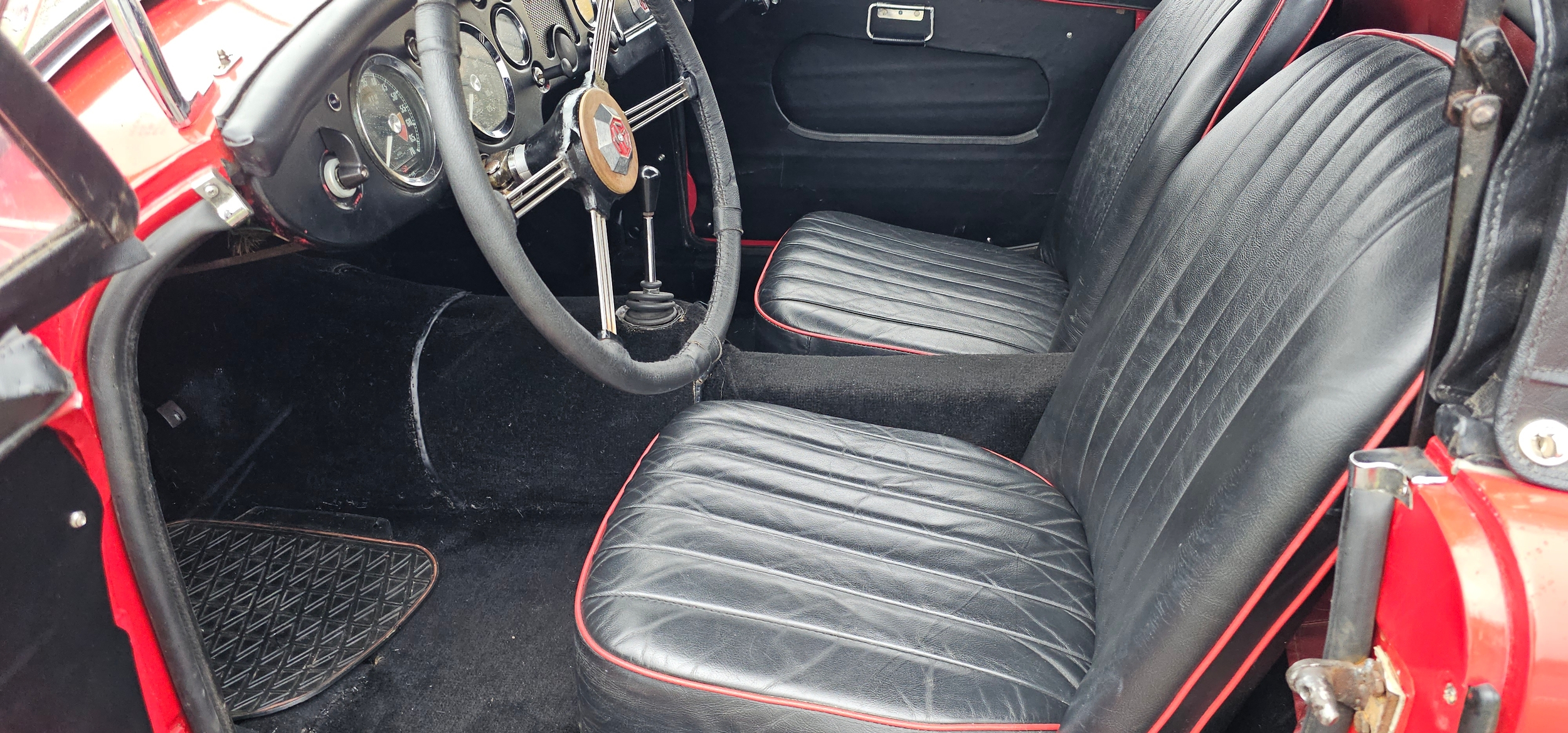 According to the accompanying Heritage Certificate UYU was dispatched form the factory on the 12th July 1960 as a black car with red interior and grey hood. It was exported to the USA and by 2005 was in New Mexico. In 2015 Stuart Skimming of Dumfries imported it and sold it to Dave Mackenzie as a restoration project. A serial restorer he took the body off, rebuild/replaced the running gear and brakes, including added a servo, the engine was dismantled and new rings and shells fitted to factory specs (the condition of the engine lead him to believe the 36,000 on the speedo was correct). A NOS radiator was fitted. The body required two patches to the lower rear wings where they meet the sills, apart from this the body is original with aluminium bonnet, boot and doors. It was resprayed Chariot Red with black leather seats and a new hood; a new speedo was fitted as were 72 spoke chrome wire wheels.