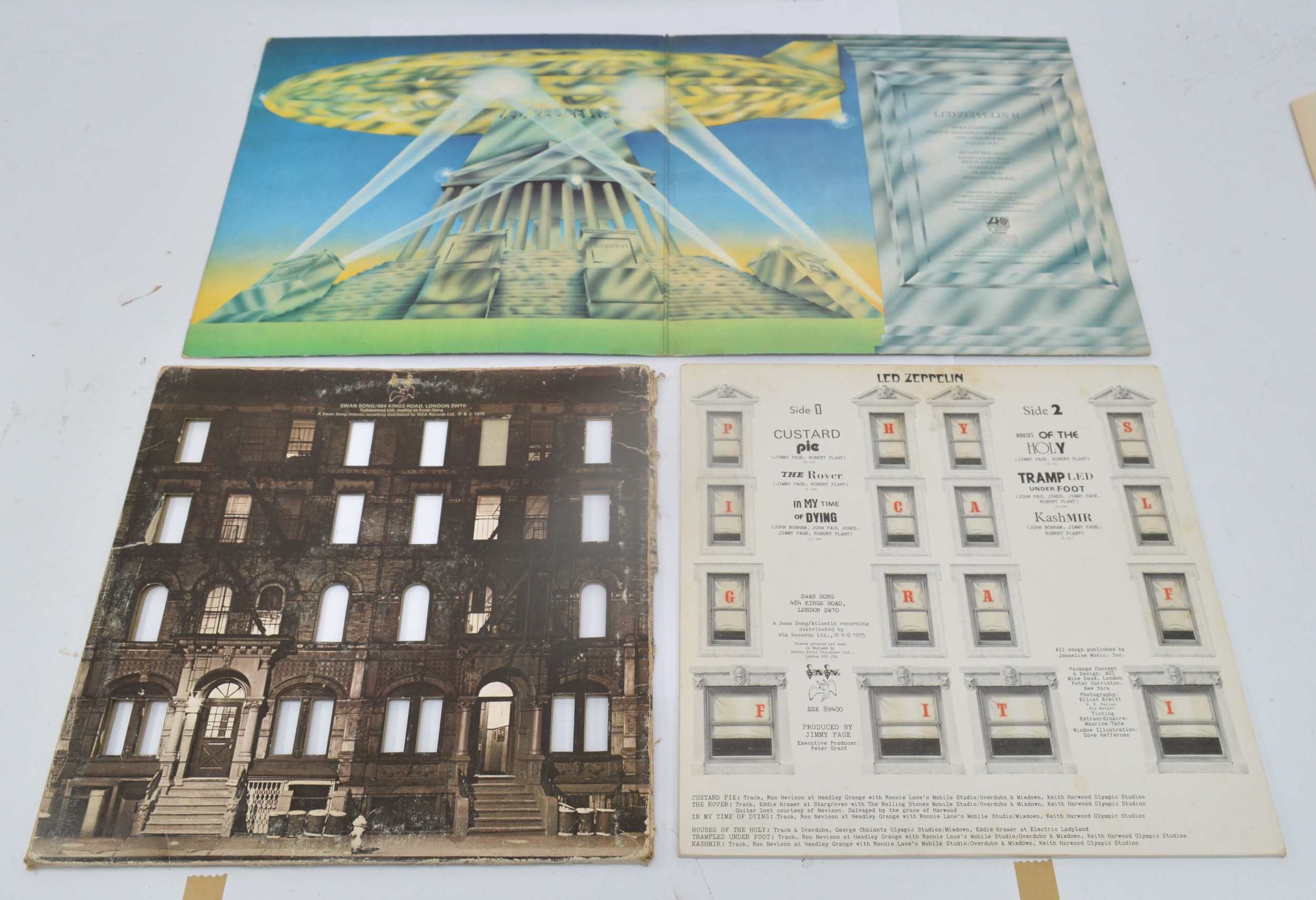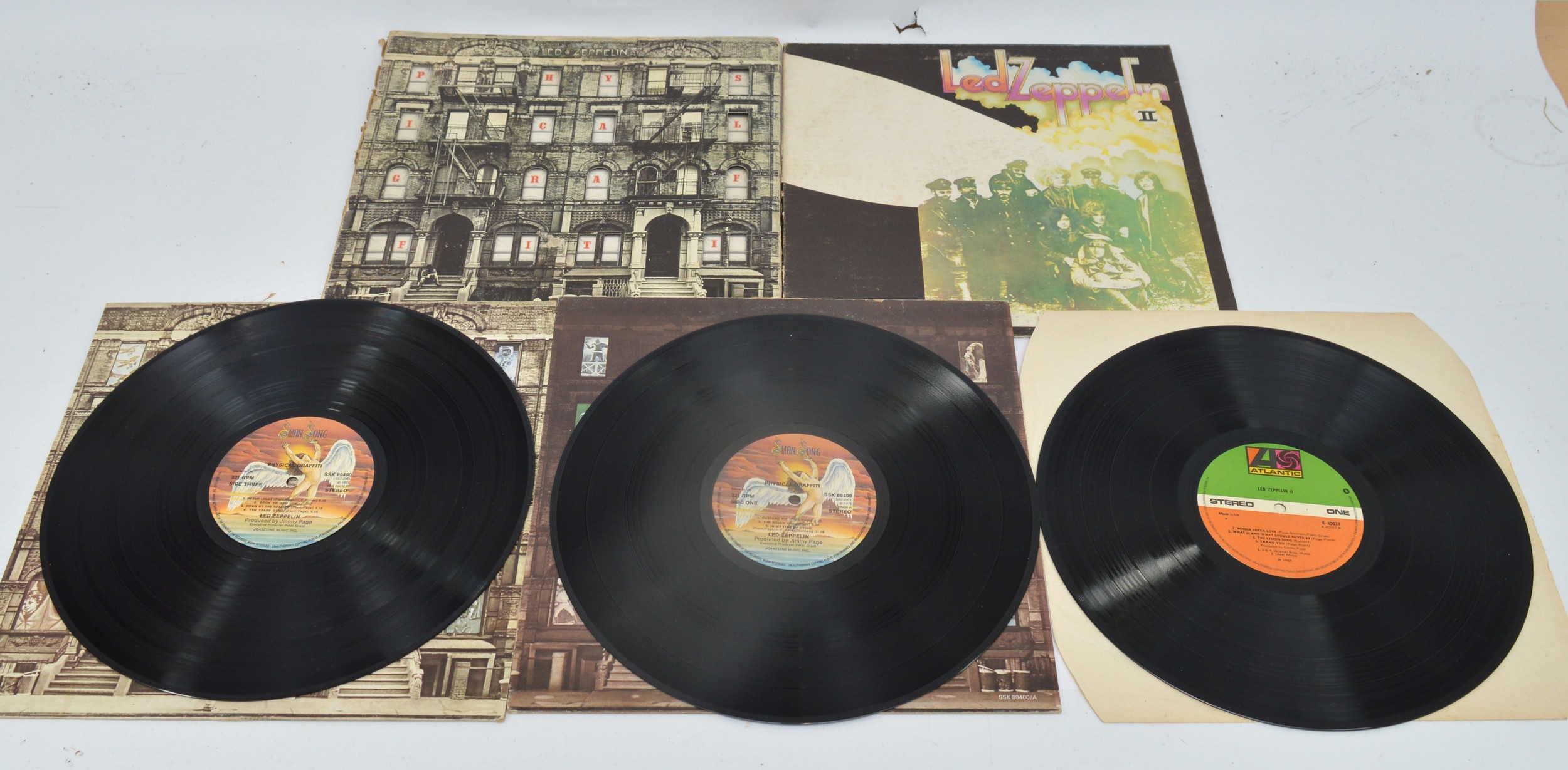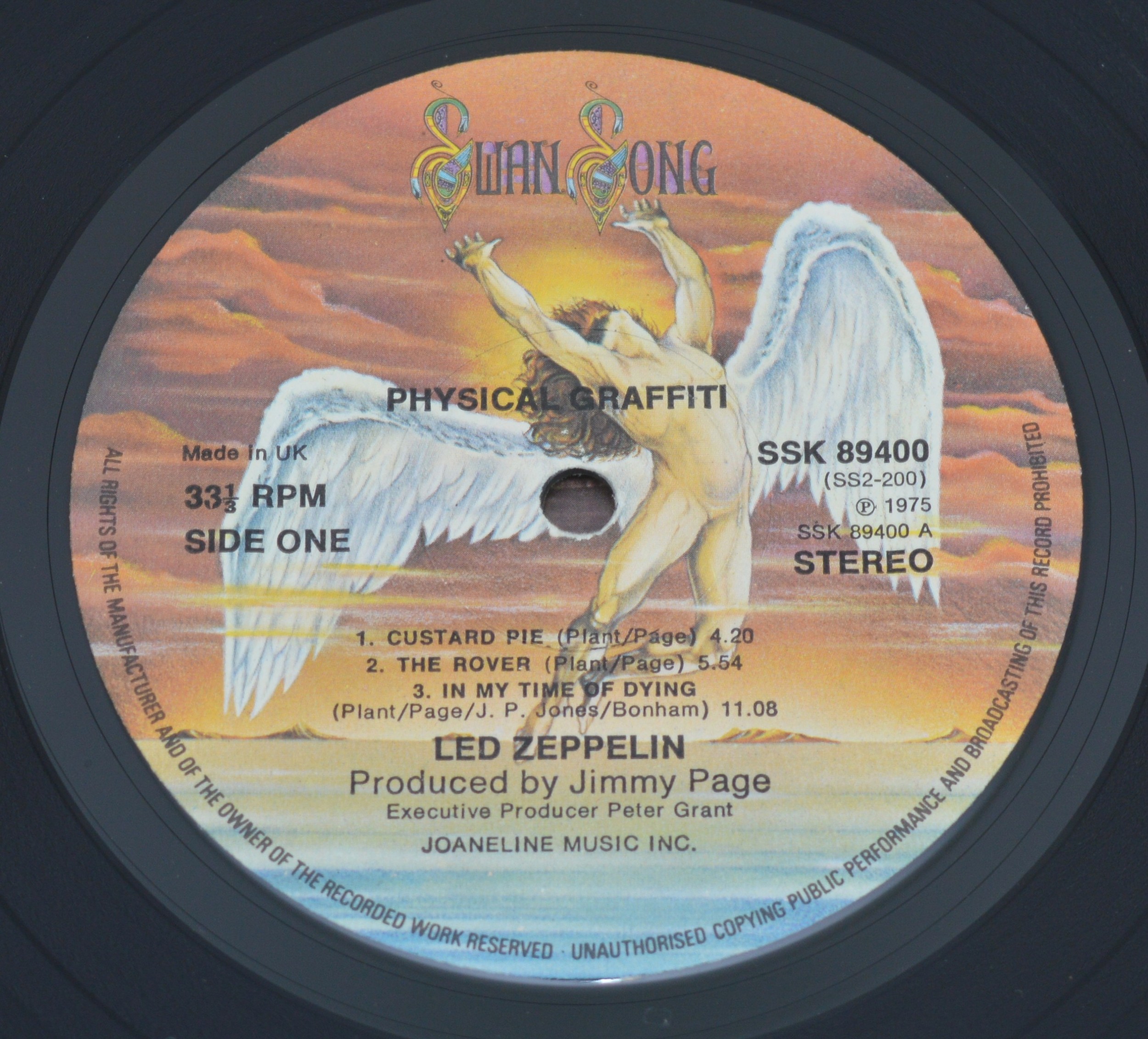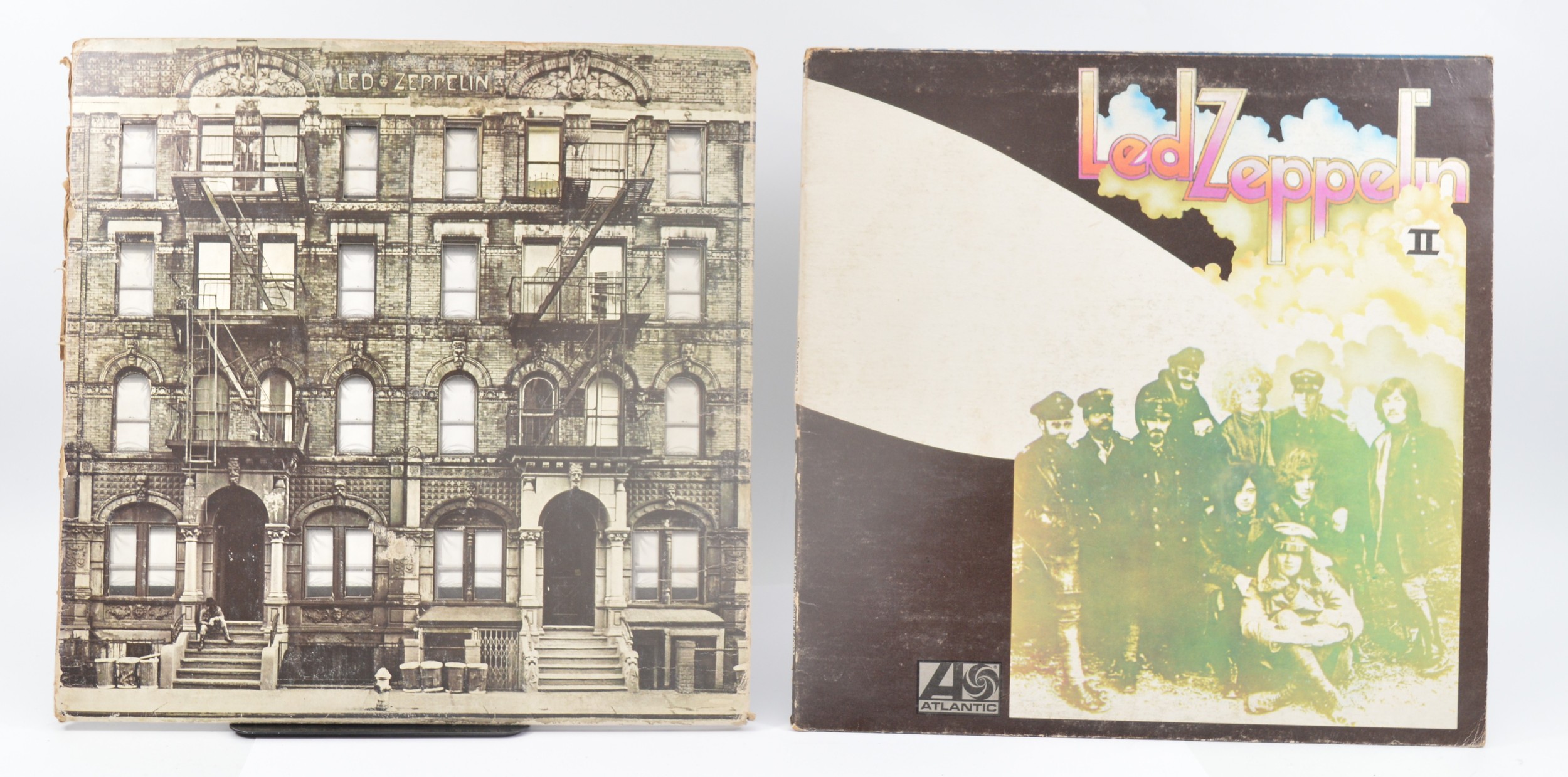 Led Zeppelin, Physical Graffiti, 2x LP SSK 89400, original cover with "SWAN SONG/484 KINGS ROAD, LONDON SW10" on back, custom inners with "SSK 89400/A" and "SSK 89400/b" printed bottom right, folded insert by Gothic Print Finishers LTD, together with Led Zeppelin II, K 40037, reissue, gatefold. (2)