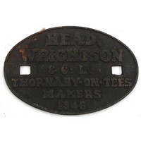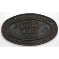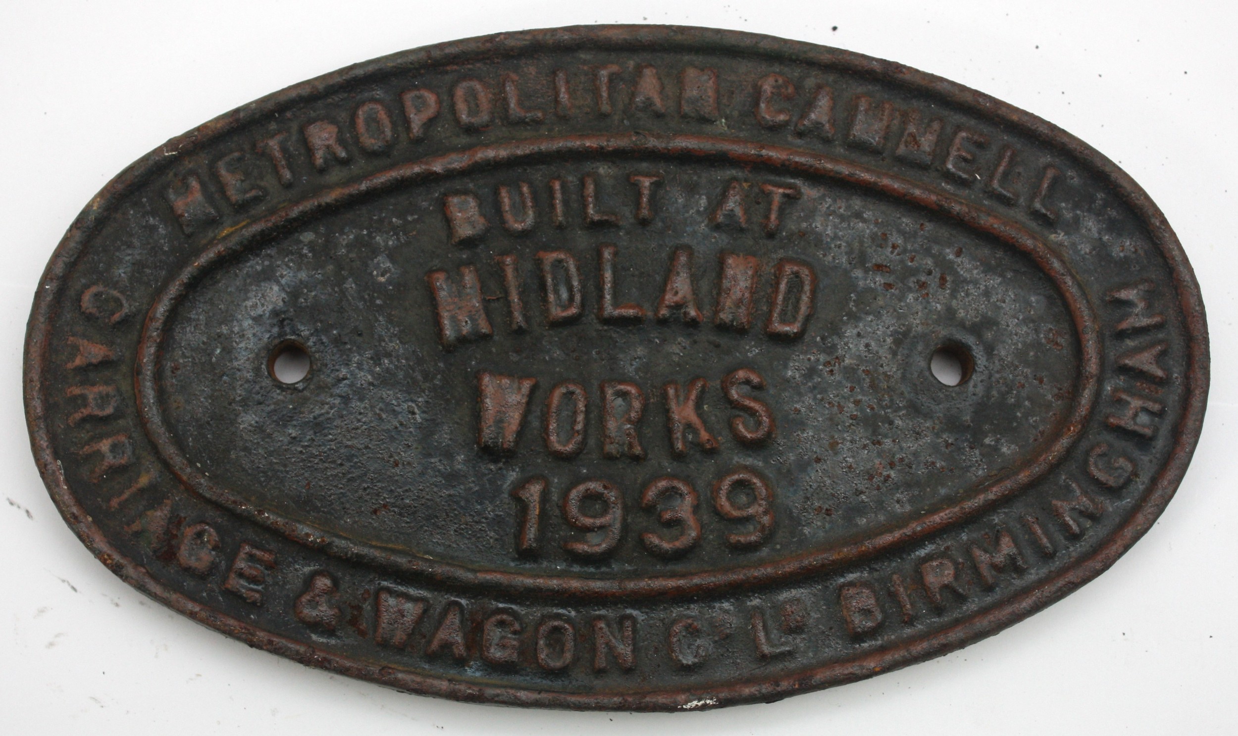 A cast iron wagon makers plate- Metro. Cammell C&W Co Ltd, Midland Works, Birmingham 1939, 20cm x 12.