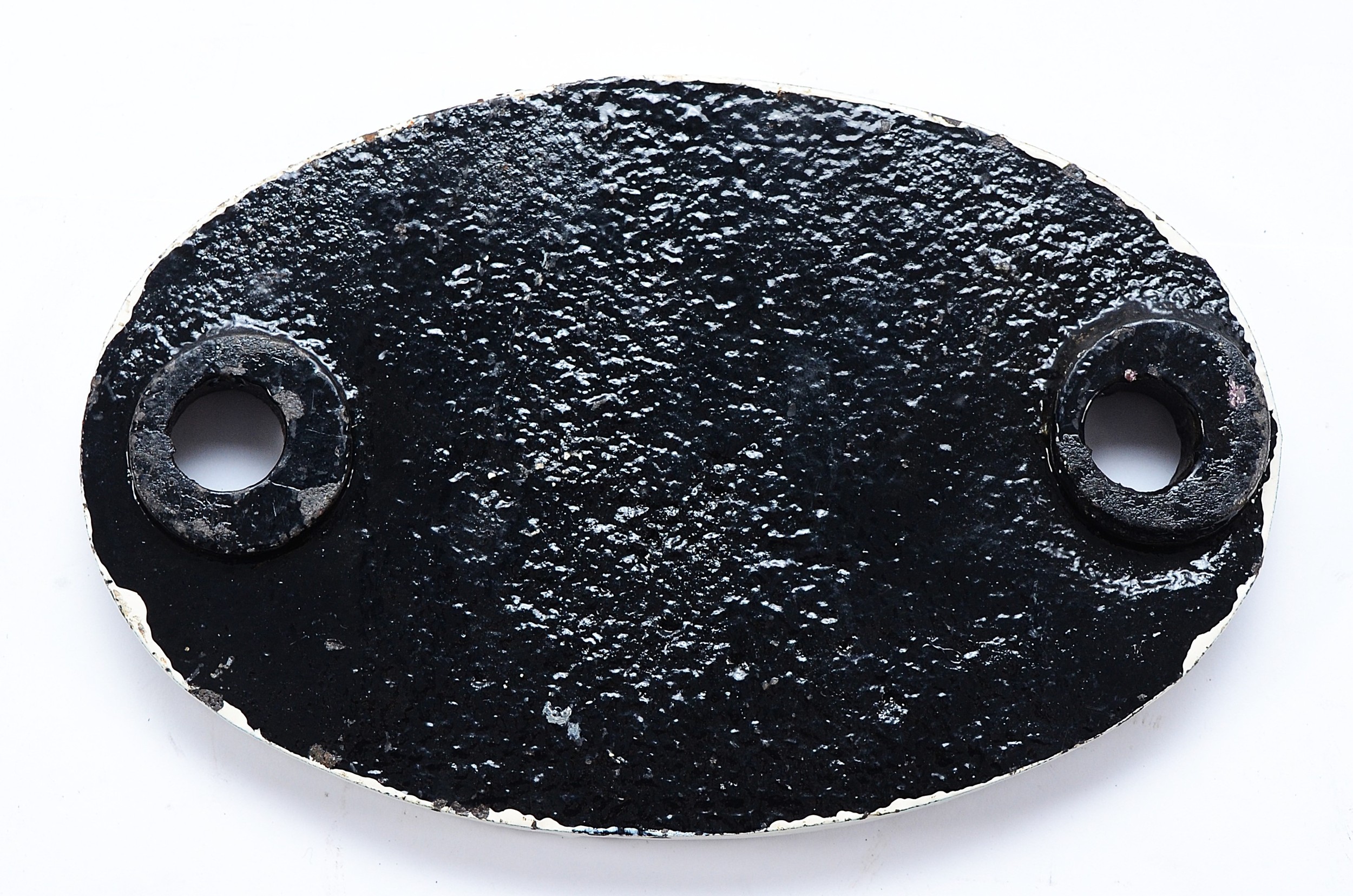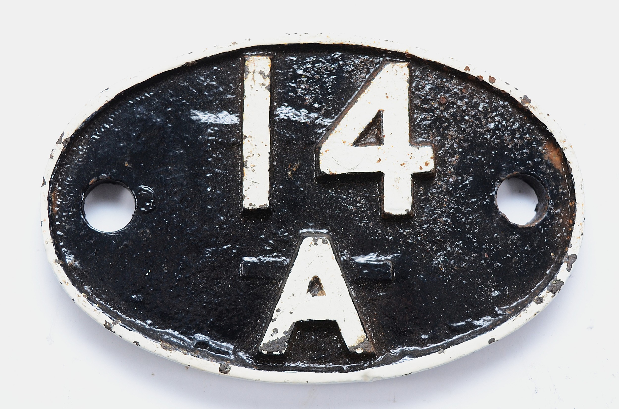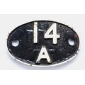 A cast-iron shed plate- 14A Cricklewood (London), closed 1964, 12 x 18cm.