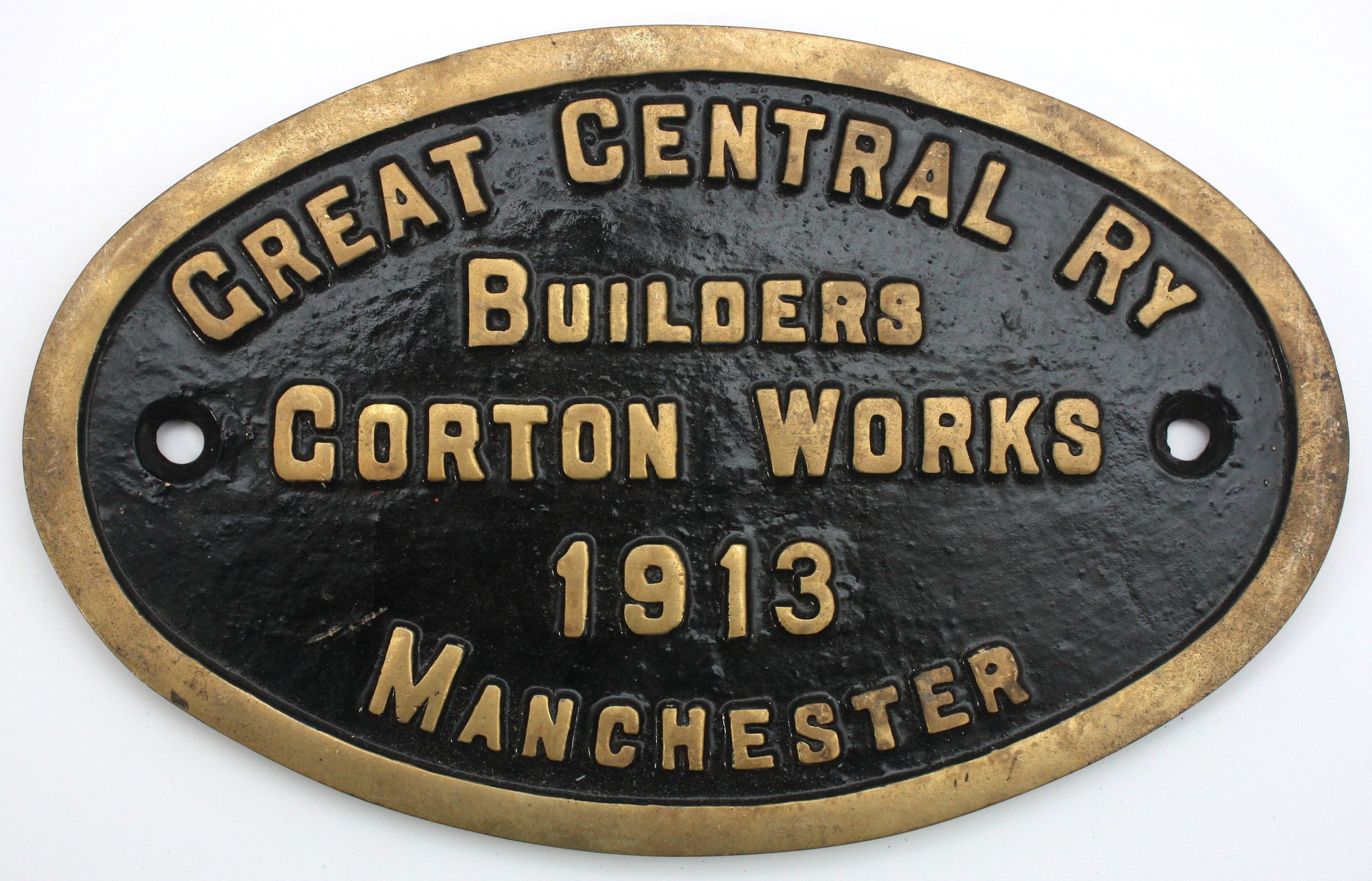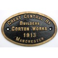 A brass oval replica works plate - Great Central Railway Builders, Gorton Works, Manchester 1913, 26cm x 16.